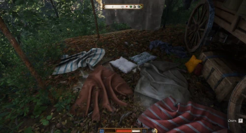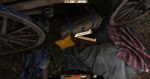 Исследуйте палатку Марики, которая расположена рядом с жилищем Аранки. Внутри вас ждет минималистичное убранство: лишь навес и несколько разбросанных одеял. Осмотрите пространство под повозкой, где вы обнаружите платок девушки, лежащий рядом с запертым сундуком. Однако есть еще одна важная зацепка, которую следует изучить.
