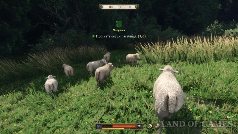 Вернитесь к стаду и гоните всех овец к ближайшим деревьям. Если Барбос мешается под ногами и пугает овец, отдайте ему команду стоять поодаль.