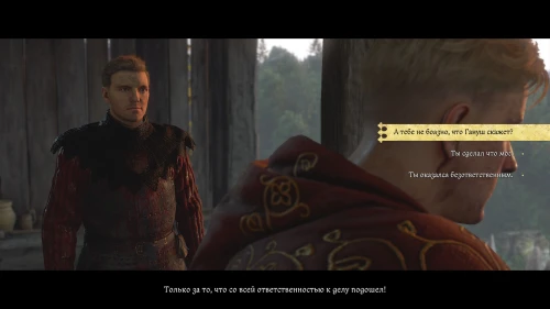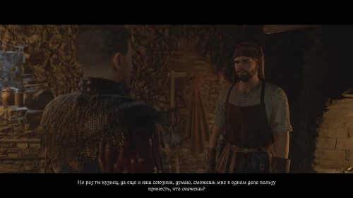 Следуйте во внутренний двор небаковской крепости и зайдите в кузню. Теперь вам снова придется пройти проверку навыков, выбрав соответствующие реплики. В противном случае завяжется очередная драка.