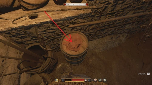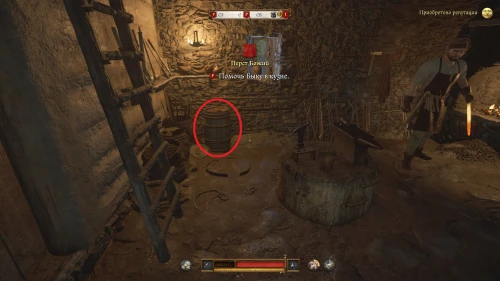 После взаимодействия с Быком, он даст вам задание наточить три единицы оружия для солдат: обычный длинный меч, боевой меч и бородатый топор. Взять данные предметы вы можете из бочки в левом углу кузни.