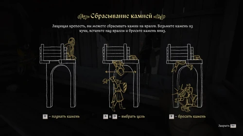 Теперь взаимодействуйте с камнями и бросайте их прямо на головы врагов, пытающихся вломиться через забаррикадированные ворота.