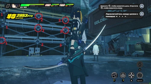 Встаньте на особую сенсорную точку и, используя заряженные выстрелы, активируйте следующие точки: 2 и 3 точка в верхнем ряду, 2 и 3 точка в среднем ряду, 1 точка в нижнем ряду.