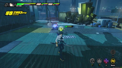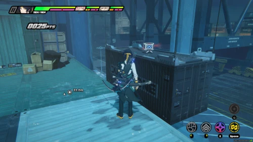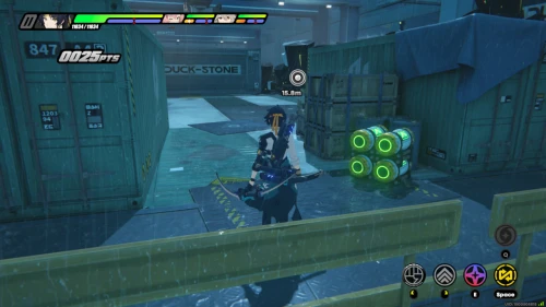 Прежде чем отправляться к лифту, пройдите немного дальше и взорвите контейнеры, чтобы восстановить ХП и энергию. Там же вы можете открыть мини-грузовик, стоящий на отдельной платформе.