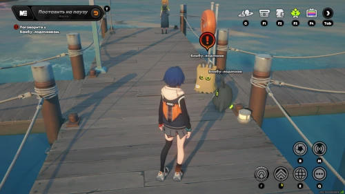 Спуститесь по лестнице и направляйтесь к деревянному причалу.