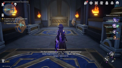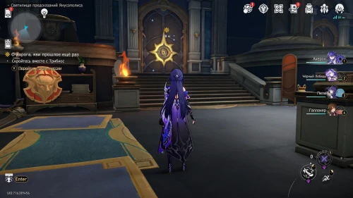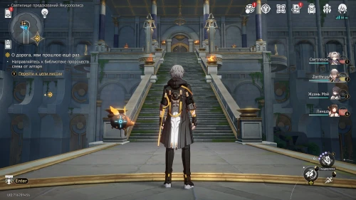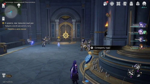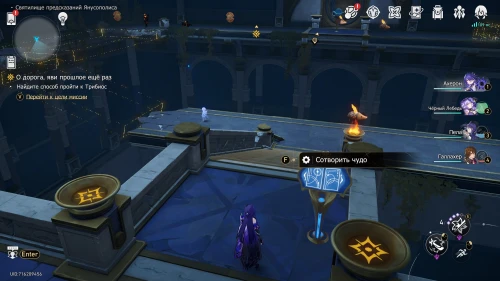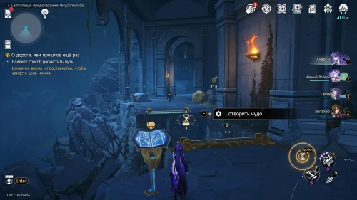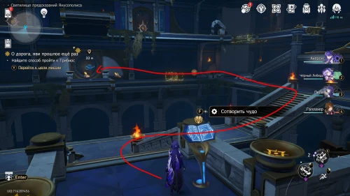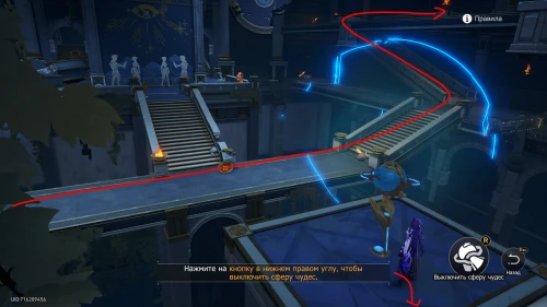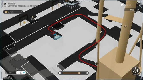 Вы попадете в Святилище предсказаний Янусополиса. Поднимитесь наверх по лестнице, а затем сверните влево и взаимодействуйте с тайной тропой. Начните двигать мышку вправо, чтобы сформировать рисунок и попасть на другую сторону. Откройте две двери справа, чтобы попасть в просторное помещение.