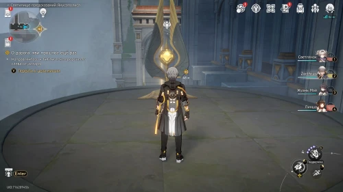 Затем взаимодействуйте с консолью, установленной в центре. Поговорите с друзьями. Вы решите заняться разгадыванием первой головоломки.
