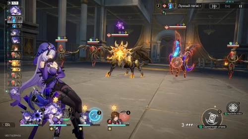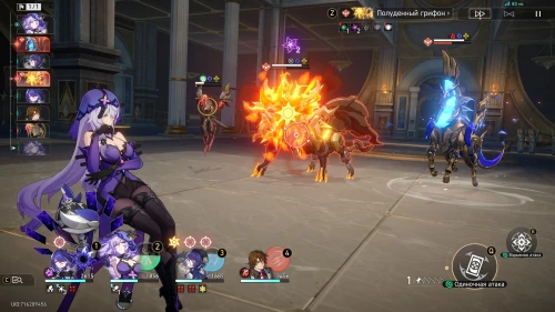 Идите в коридор, и вы столкнетесь здесь с мини-боссами Полуденным грифоном и Лунным пегасом. Их уязвимости продемонстрированы на скриншоте ниже. Рекомендуем вам взять квантовых или/и мнимых дамагеров, способных бить по площади (к примеру, Мидея, Яшму или Пожирателя Луны). Оба противника обладают мощными атаками по площади, поэтому требуется целитель или щитовик, способный исцелять или защищать сразу всю группу.