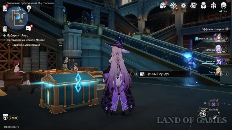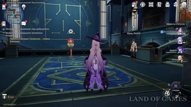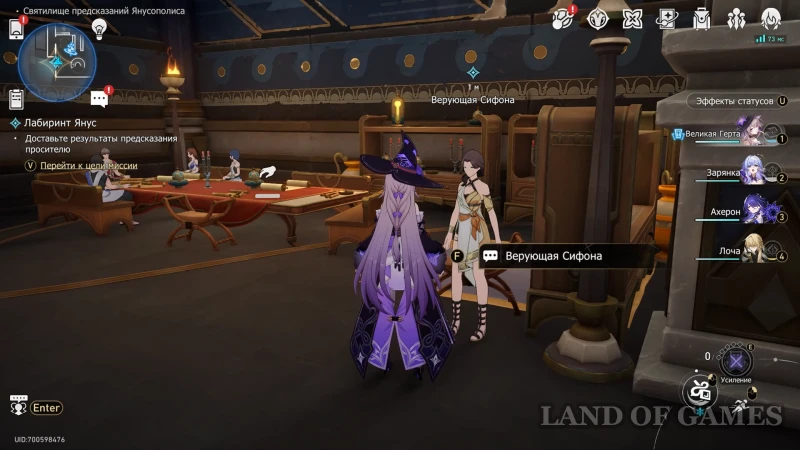 После решения третьего и четвертого лабиринта, заявка по «поиску разума» будет полностью расшифрована — ее остается отнести «заказчице» Сифоне. Девушка ждет в западном крыле на -2 уровне Библиотеки пророчества. После доставки предсказания, рядом с верующей появится один обычный ларец — залутайте его содержимое и возвращайтесь к Монту для продолжения миссии.