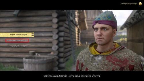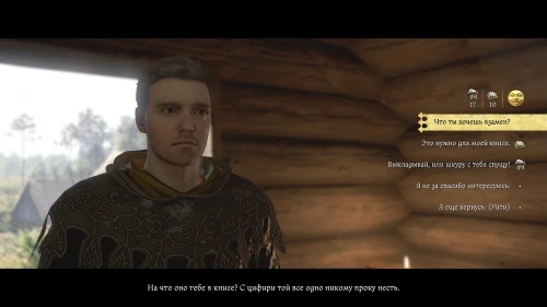 Если вы пройдете проверку на красноречие, то Самко сразу расскажет вам, сколько корзин его люди добыли в день. В случае неудачи вы сможете как подкупить его за 200 грошей, так и обыграть в кости.