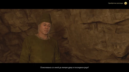 Чтобы набрать репутацию выбирайте следующие реплики: «На небесах боли нет» > «Я помолюсь с тобой».