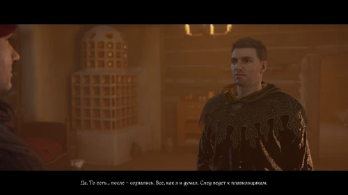 Кристиан предложит поговорить вам с хозяином плавилен — Бурешом. Но заранее предупредит о том, что Индро лучше сойти за благородного шляхтича, чтобы получить расположение хозяина.