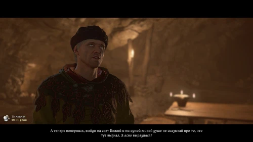 Выбравшись из шахты, покиньте данную область и, воспользовавшись быстрым перемещением, вернитесь в Грунту. Доберитесь до Кристиана из Писека и сообщите ему обо всем, что вы узнали в плавильнях и тайном монетном дворе. Чтобы получить максимальную награду за выполнение данного квеста, выбирайте следующие фразы, отмеченные ниже.