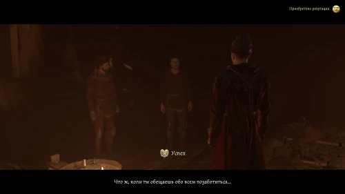 Чтобы набрать репутации, выбирайте следующие реплики: «Извинения приняты» > «Мы на одной стороне!» > «Никто не узнает» > «Что мне с ним сделать?» > «Но вам нужны доказательства?».
