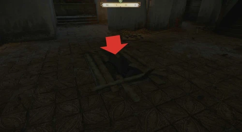 Разложив по пирамидам все имеющиеся у вас кости и черепа, пройдите в центр помещения и взаимодействуйте с находящимся тут люком на полу. Затем посмотрите небольшую кат-сцену, в рамках которой вы упадете прямиком в катакомбы.