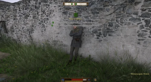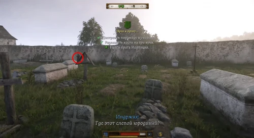 Выберитесь на кладбище из часовни и подождите, пока Индро не скажет, что монаха нигде нет. После этого задача обновится – вам нужно будет поболтать с могильщиком Ленеком, который стоит возле каменной стены.