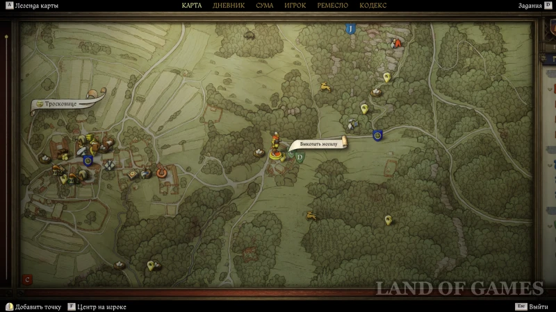 Женщину часто можно найти на кладбище в Тросковице или на пути к нему, либо же в ее доме напротив лавки портного. Лучше всего ориентироваться на текущий маркер местоположения на карте и компасе.