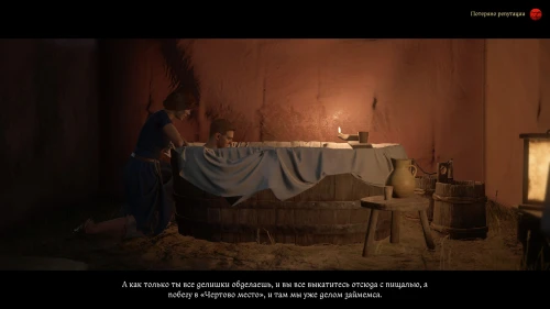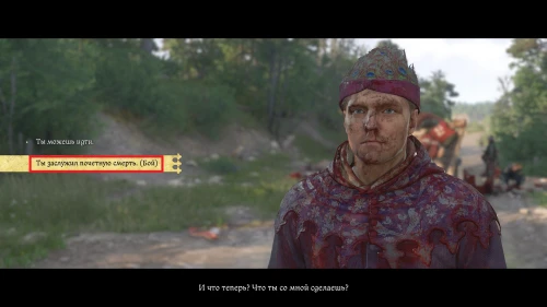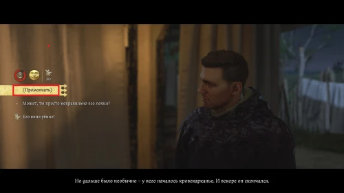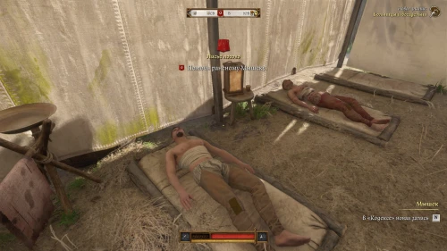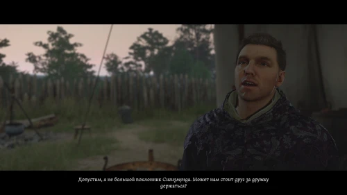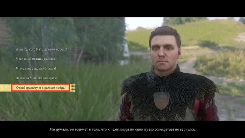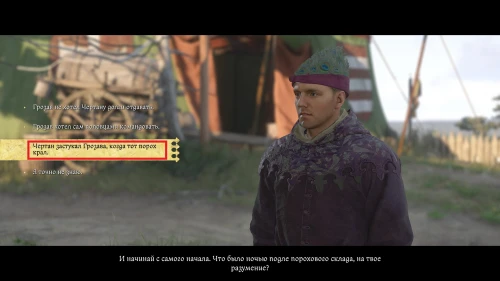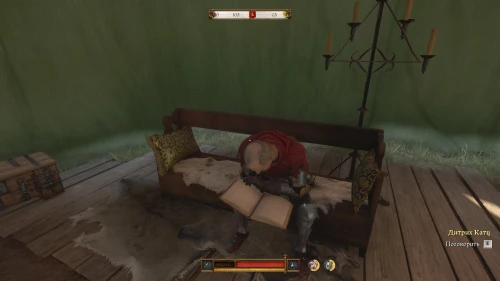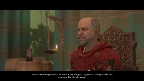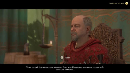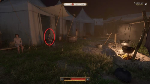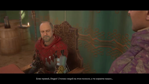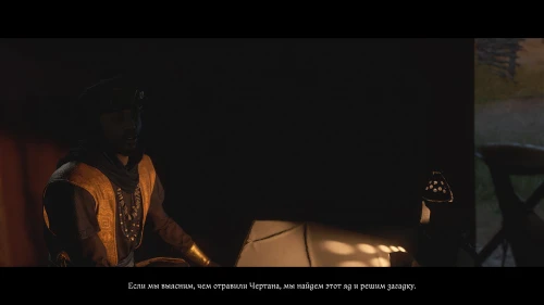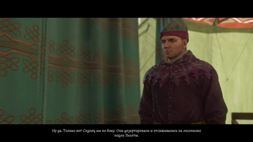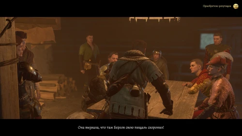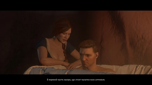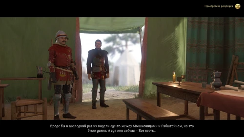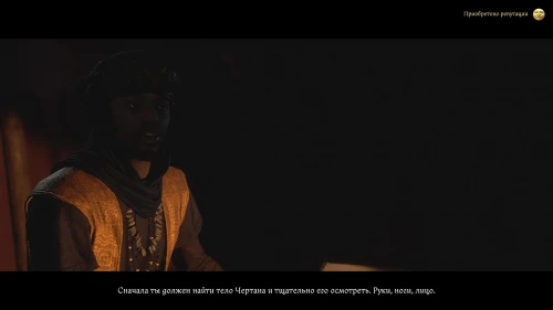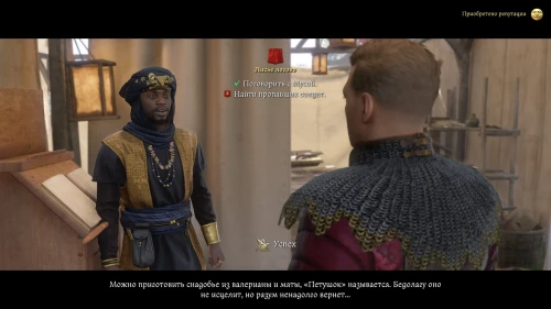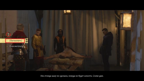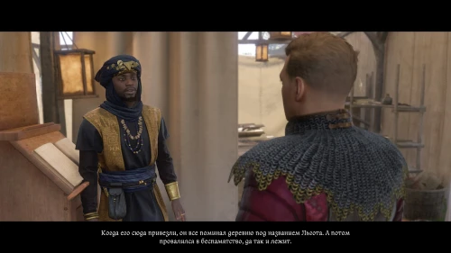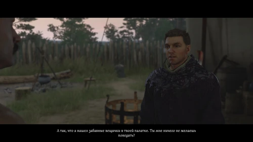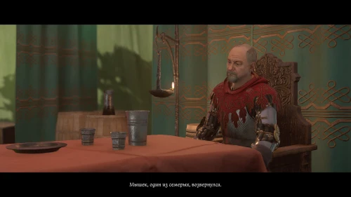 После этого, пока вы будете выпивать с врагом, время пройдет автоматически и следом будет идти катсцена. Чертан — предводитель половцев, будет найден с ножевым ранением и в весьма критическом состоянии. Поговорите с Катцем и получите задание отыскать напавшего.
