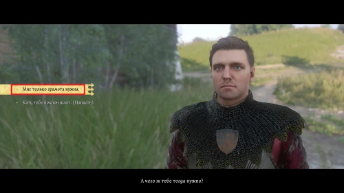 Как только вас заметит кто-либо из солдат, начните с ними диалог. Чтобы получить грамоту, выбирайте следующие реплики, которые мы отметили ниже.