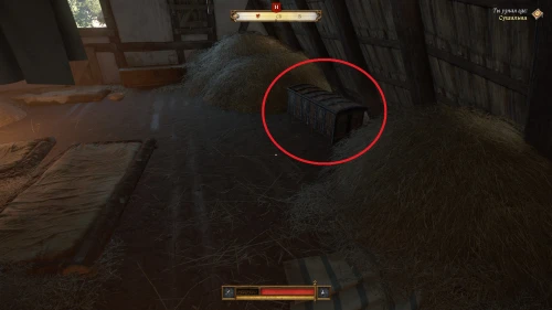 Осмотрите все доступные для изучения предметы и вскройте сундук с простым замком. Ничего подозрительного вы не найдете.