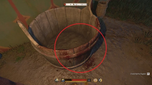 Улика 4: осмотрите окровавленную бадью и нож, лежащий в траве рядом