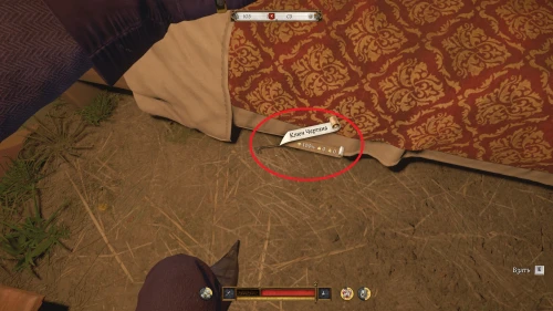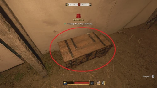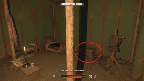 Улика 5: зайдите в палатку Чертана, рядом с которой стояла окровавленная бадья. Поднимите ключ Чертана, лежащий на полу у его кровати и отоприте сундук.