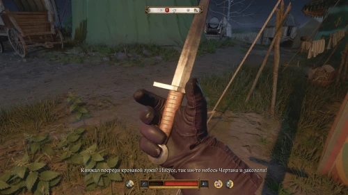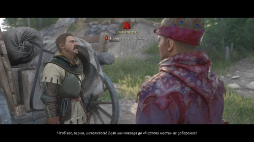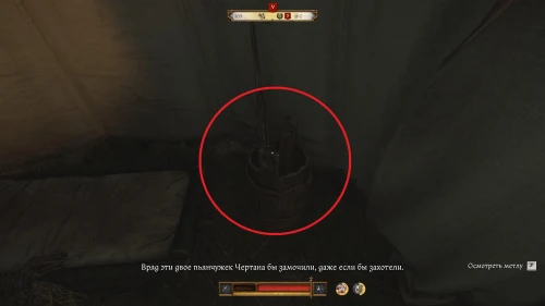 После того как вы убьете Катца и облутаете трупы солдат на предмет грошей и ценных вещей, вернитесь к Жижке и, выбрав фразу «Поехали в чертово место», вы переместитесь в корчму и начнете новое задание «Танцы с чертом».