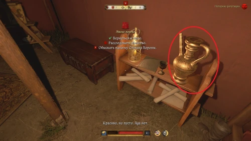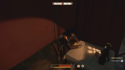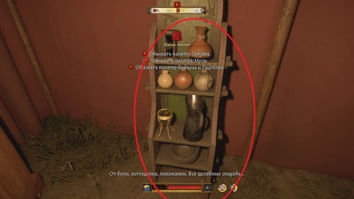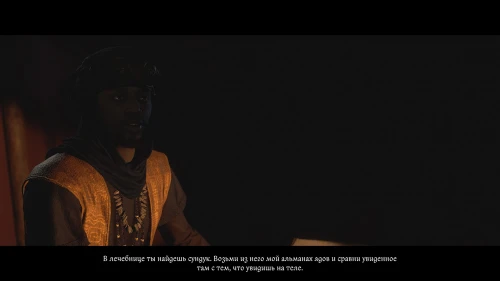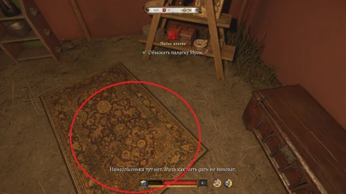 Завершив разговор с Мусой, осмотритесь в его палатке. Изучите коврик для молитвы, снадобья, предметы ценности и сосуд, стоящий на прикроватном столе.