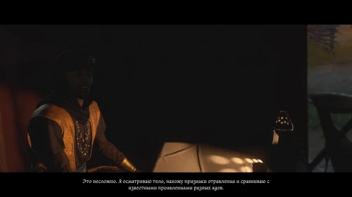 Следуйте обратно в лазарет и внимательно изучите тело убитого Чертана. Отметьте все конкретные симптомы отравления и завершите осмотр.