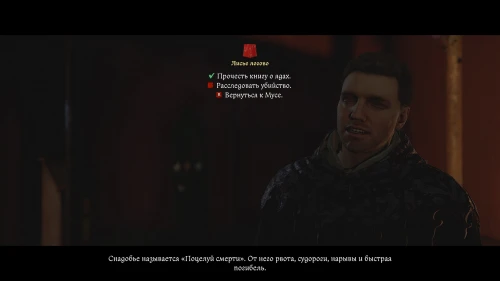 Вернитесь к Мусе и выберите следующие фразы: «Я знаю чем Чертана отравили» > «Поцелуй смерти» > «Это точно тот самый яд» > «Рассказывай» > «В толк не возьму, что ты болтаешь (Ложь)».
