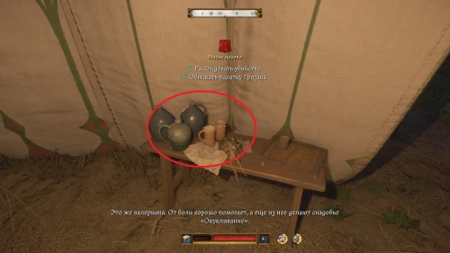 В случае, если вы не осматривали палатку Грозава, Степан даст вам сушеную валериану, которую вы должны подбросить в сундук Грозава. Однако, в этом не будет никакой необходимости. Если вы осмотрите его стол, вы также найдете там валериану. Сундук будет заперт на замок высокого уровня сложности и при вскрытии привлечет стражника, сидящего снаружи.