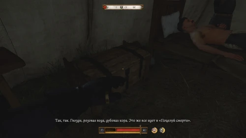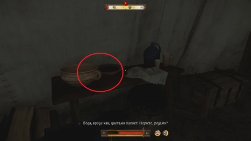В палатке десятника Степана осмотрите следующие предметы: розовую воду в миске, дубовые дрова и гвозди. После осмотра Индро прокомментирует находки: именно эти ингредиенты используются для создания «Поцелуя смерти», а значит именно Степан Ворона виноват в убийстве.