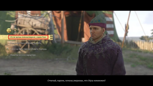 Зайдите в палатку к Мусе и исчерпайте с ним все диалоги. Он скажет, что скорее всего, кто-то отравил вино, которое Муса дал Чертану перед смертью. Если вы поймете, какой яд был добавлен в вино, вы сможете отыскать убийцу.
