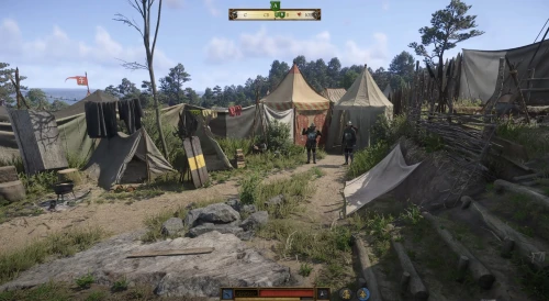 Первым делом мы советуем вам взяться за поиски схваченного рыцаря, которого держат в Лагере Сигизмунда, расположенном к северо-западу от Мышковицы. Отметим, что вы сможете свободно ходить по данной территории, когда вступите в армию короля в рамках сюжетного квеста «Лисье логово».