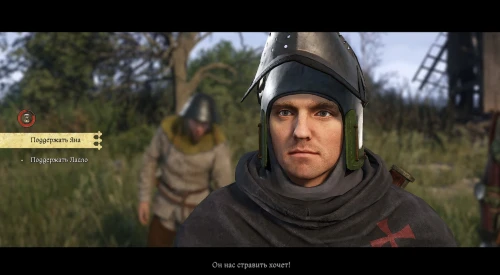 Вступите в диалог с Ласло. Если вы узнали о смерти Питера, то можете прикинуться, что вам ничего неизвестно и начать переговоры. У вас спросят, почему Ян сам не явился в лагерь – можете пройти проверку на Впечатление (средне), чтобы Ласло не узнал, что рыцарь ранен.