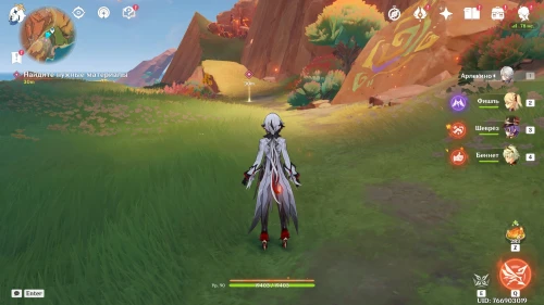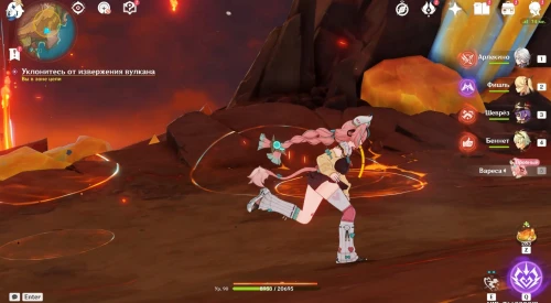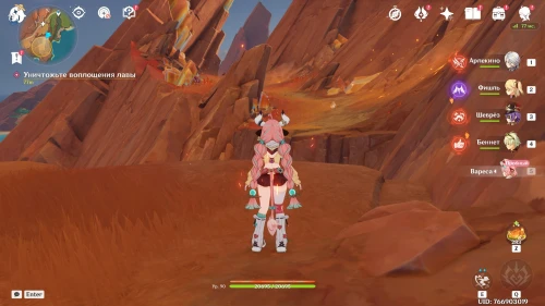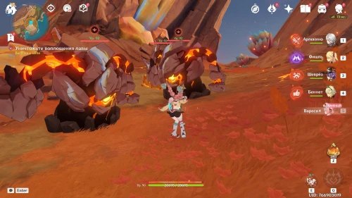 Вы наконец-то получите в свое распоряжение Варесу. Далее вам необходимо будет взобраться на верхушку Священной горы. Для этого переключитесь на данную барышню, а затем зажмите кнопку элементального навыка, чтобы перейти в ускоренный спринт и прорваться через преграду. Разрушьте два булыжника, а потом вступите в схватку с воплощением лавы.