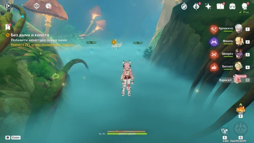 Начнется диалог с Грибным владыкой, после чего вам необходимо будет победить группу плесенников, снова взяв под управление Варесу. Напомним, что ее основная комбинация выглядит следующим образом: сначала применяете элементальный навык (клавиша «Е»), потом совершаете заряженный удар (один раз нажмите ЛКМ) и в конце выполняете быструю ульту (клавиша «Q»). Вы сможете провести 2 комбинации подряд, после чего можно переключаться на своих саппортов и саб-ДД.