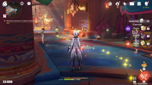 Далее вас ждет очередное испытание, выполненное в форме двухмерного платформера. Вам необходимо будет управлять Варесой и преодолевать различные препятствия. В основном придется использовать особый спринт героини, зажимая кнопку элементального навыка (клавиша «Е»). Так вы сможете перепрыгивать через расщелины, ломать колонны и даже бегать по воде. В видео ниже показано прохождение всего первого этапа.