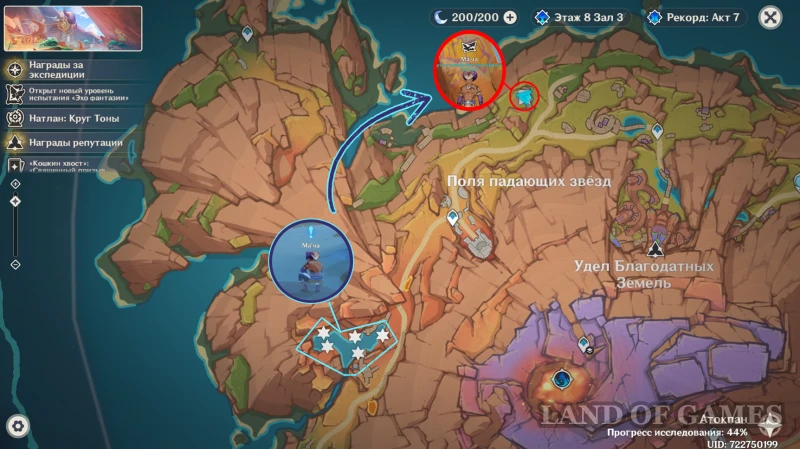За успешное завершение миссии вас ждет награда в 30 примогемов, 200 очков к опыту приключений и до 37 тысяч моры. А тренер Ма'ча переместится на арену в северной части Полей падающих звезд и приступит к своим полномочиям тренера духовного пути.