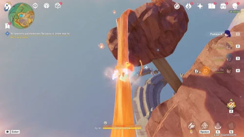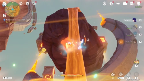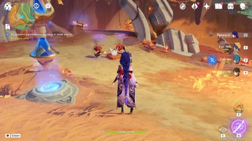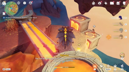 Доберитесь до выделенной зоны на западе и активируйте здесь телепорт, если вы еще этого не сделали. Чуть впереди вы заметите двух Пиро магов бездны, которые охраняют обесточенного робота-дракончика. Разберитесь с врагами (лучше всего подойдет Крио, Гидро или Электро персонажи).
