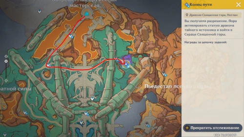 В Genshin Impact Конец пути является заданием мира Натлана и частью квестовой цепочки «Записи о заброшенном городе», в рамках которой вам предстоит активировать статую дракона тайного источника и спустится вглубь горы. Если у вас появились сложности с прохождением квеста, то изучите наше руководство.