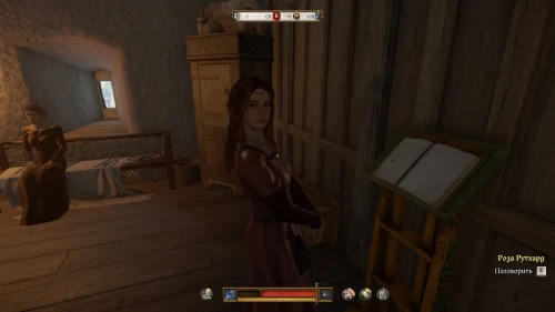 Выучив пару фраз у Брабанта, следуйте к пани Розе, чтобы забрать подготовленную одежду. Поговорите с ней и взаимодействуйте с расписным сундуком на выходе из покоев девушки.