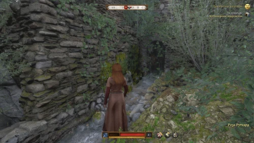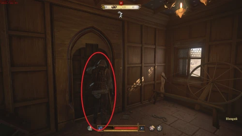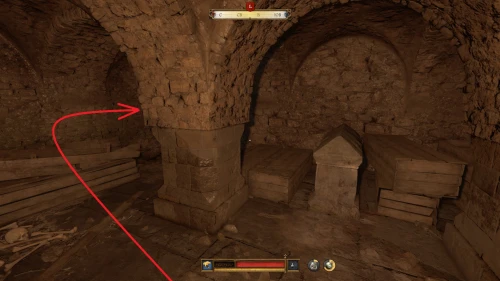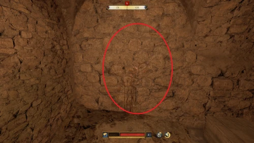 Теперь вы должны осмотреть все стены и выбрать ту самую, за которой скрывается проход во Влашский двор. Нужная стена будет находиться в левом дальнем углу помещения. Взаимодействуйте с ней и дождитесь пока Индро не пометит ее крестиком.