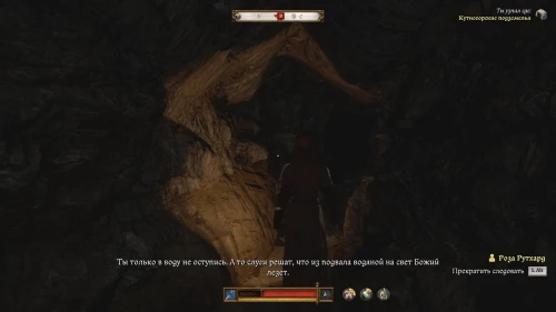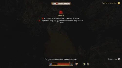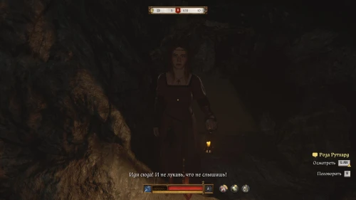 Исчерпайте весь диалог с пани и согласитесь перенести ее через затопленную часть туннеля. Нажмите кнопку F, чтобы закинуть Розу на плечо и отнесите девушку на другую сторону.