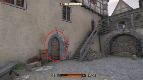 Теперь следуйте к дому минцмейстера, отмеченному на карте. Двери будут заперты и поэтому вам придется взламывать замок. Парадный вход заперт на сложный замок и пробраться внутрь проще всего будет с заднего двора.
