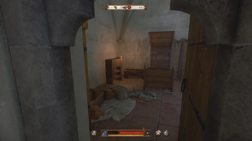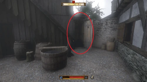 Теперь вам нужно отыскать Шмуэля и поговорить с ним. Днем обычно он находится в конюшне, по ту сторону двора. Исчерпайте весь диалог и следуйте за ним.