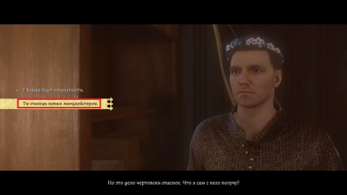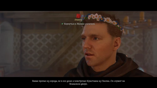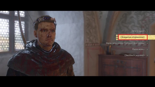 Если вы начнете с ним диалог прямо после завершения предыдущего квеста, он попросит вас подождать. Вернитесь в свою спальню и засните, чтобы затриггерить катсцену сна Индржиха.