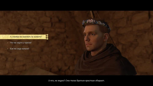 Как только вы пройдете половину пути, вы услышите голоса в одном из помещений крипты. Вы можете как убить их, так и уговорить уйти заплутавших бродяг мирным способом, выбрав соответствующие реплики.