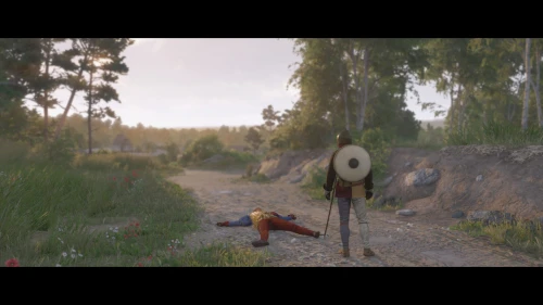 Объехав телегу, перегородившую дорогу, следуйте прямо, пока не затриггерится катсцена. Если вы хоть немного замедлитесь ваша игра также подойдет к концу.