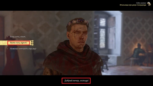 Перед тем как отправляться во Влашский двор, вам нужно переговорить с Вакленом Брабантом, чтобы узнать минимальную базу итальянского языка.