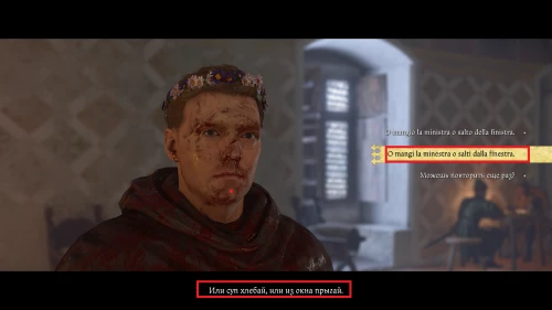 Поговорите с Богутой, сообщите ему о том, что начальник стражи коренной итальянец и может заподозрить их во лжи. Исчерпайте все реплики и завершите диалог со священником.